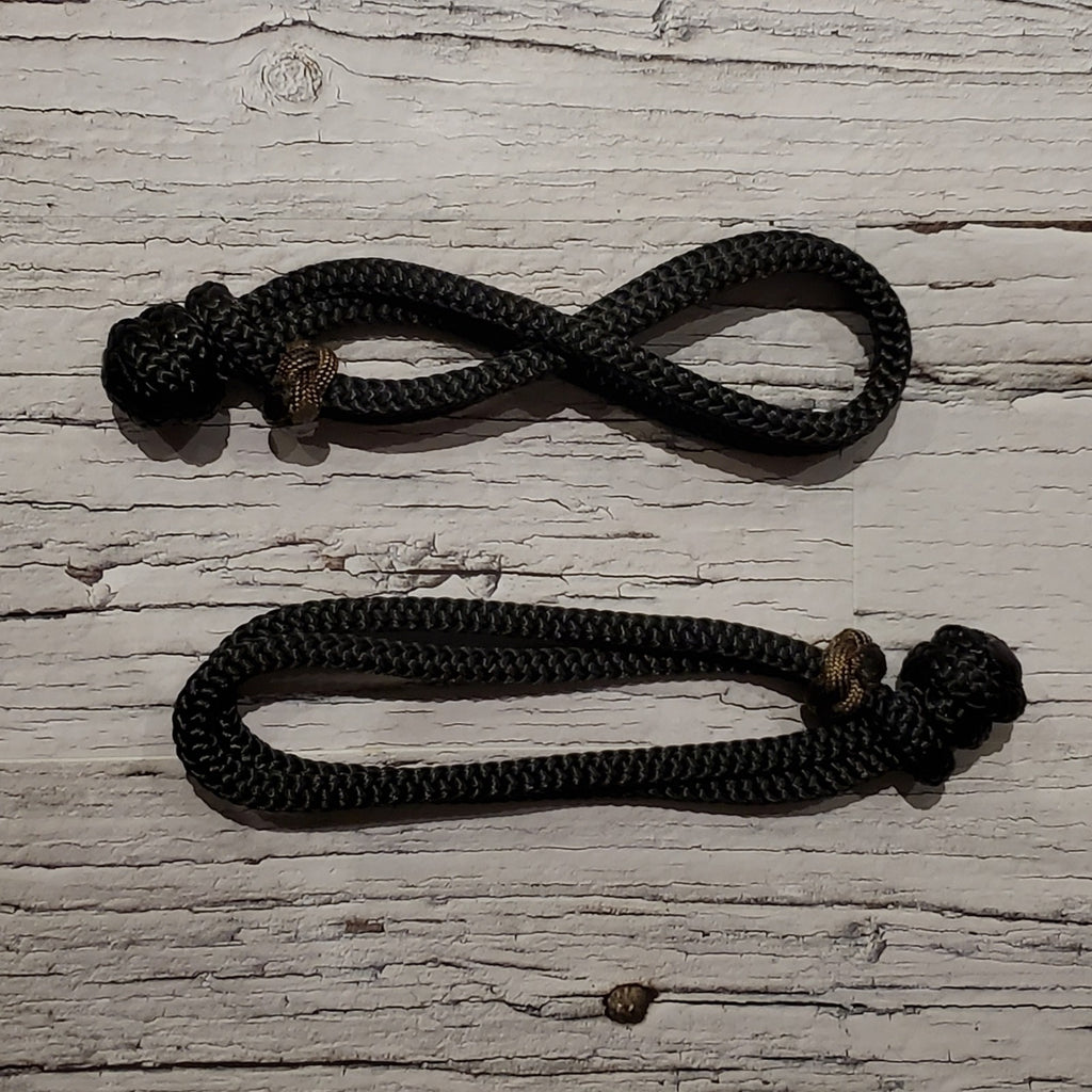 Our Lead Rope Connectors are the perfect alternative to attach a lead rope to a horse halter without having to use snaps or hardware. They are very useful for hanging buckets when away at a show, clinic, or camping adventure, tying things to your saddle, attaching keys to your belt, and many other things. They attach and remove easily.